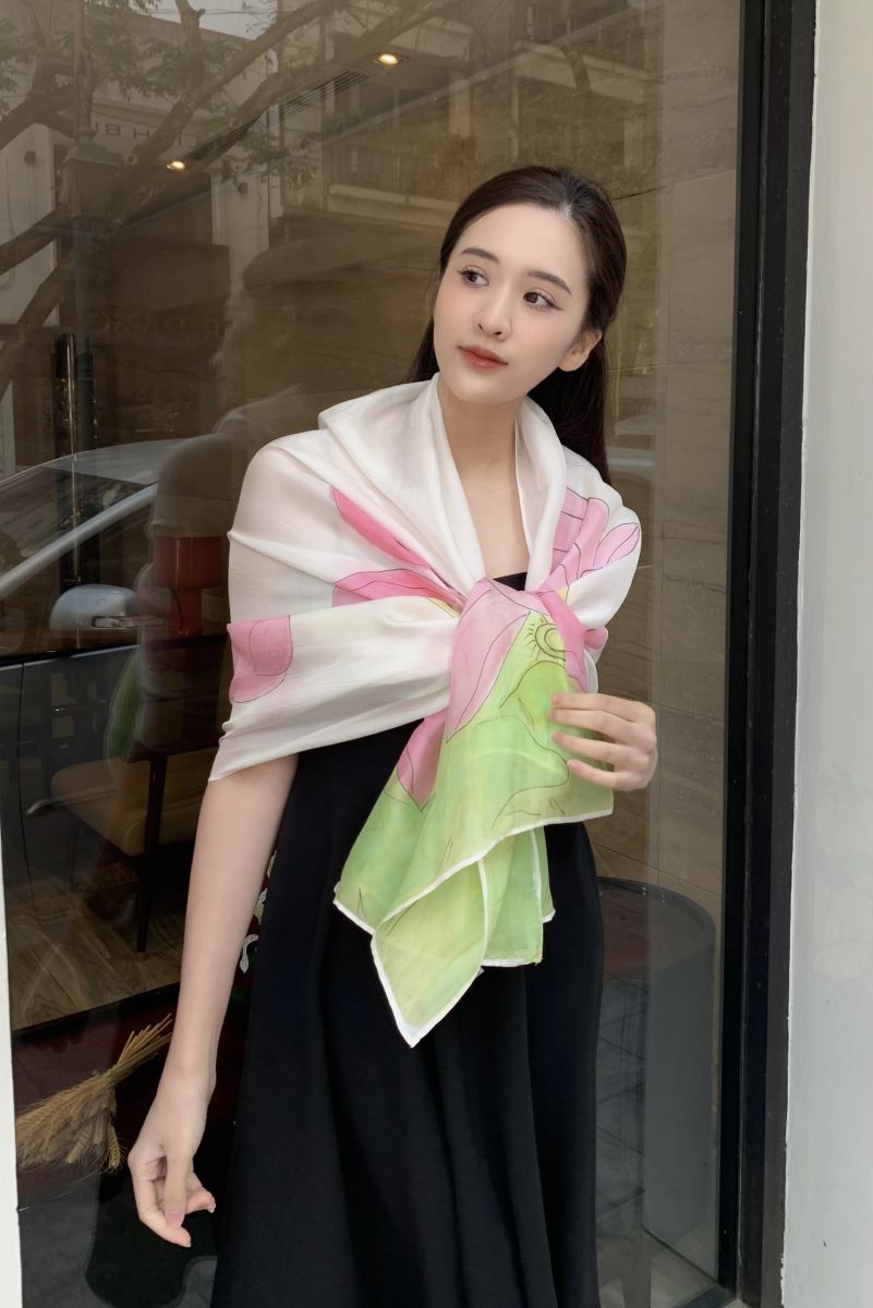 Khác với sen tím biểu trưng cho trí tuệ, sen hồng được coi là "quốc hoa" của Việt Nam, gắn liền với sự cao quý, thuần khiết và lòng kiên định vượt khó. Khi xuất hiện trên khăn lụa, hoa sen hồng không chỉ mang tính thẩm mỹ mà còn trở thành một món quà văn hóa tinh tế, chứa đựng thông điệp sâu sắc gửi tới người nhận.