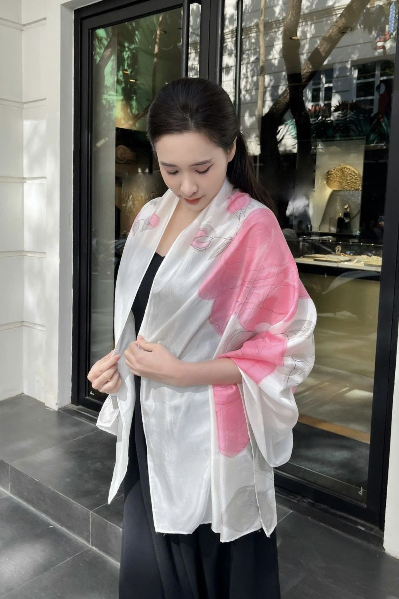 Từng đường cọ được nghệ nhân Kimcatsilk vẽ tay bằng màu chuyên dụng cho lụa, đảm bảo sắc nét, bền màu và an toàn cho người sử dụng. Sản phẩm không chỉ là chiếc khăn thời trang ứng dụng cao (dự tiệc, đi làm, dạo phố...) mà còn là một quà tặng thủ công Việt Nam cao cấp – gọn nhẹ, tinh tế, phù hợp mang tặng đối tác quốc tế, khách hàng quan trọng hoặc bạn bè thân thiết.