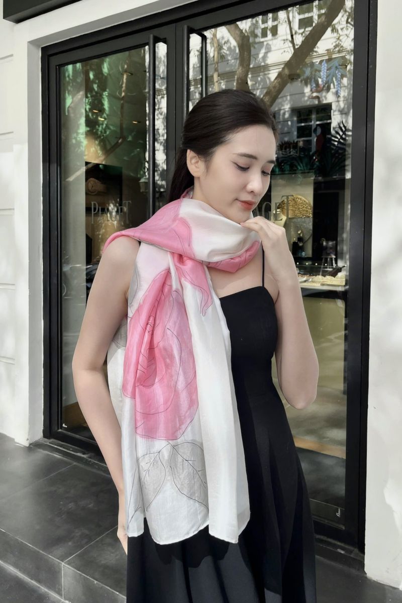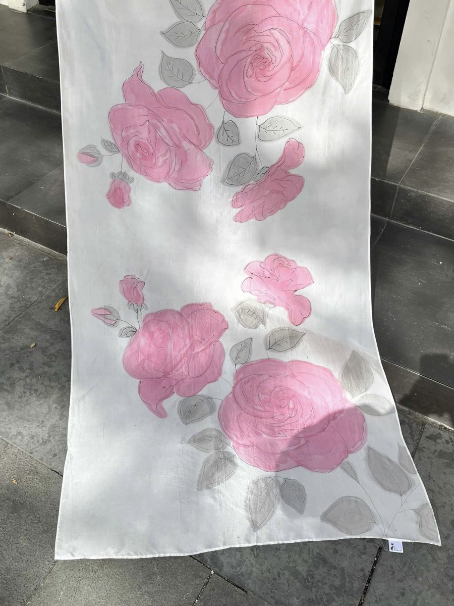 Khăn lụa tơ tằm vẽ tay hoa hồng dịu dàng là một tác phẩm nghệ thuật thủ công mang đậm bản sắc Việt Nam. Chất liệu 100% lụa tơ tằm mềm mại, nhẹ nhàng ôm lấy làn da, kết hợp cùng họa tiết hoa hồng dịu dàng – biểu tượng của tình yêu thanh khiết, sự ngọt ngào và lòng biết ơn.