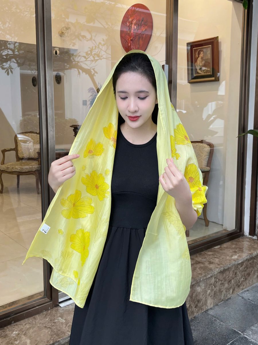 Khăn lụa tơ tằm vẽ tay hoa cúc vàng là lựa chọn hoàn hảo cho nhiều dịp: