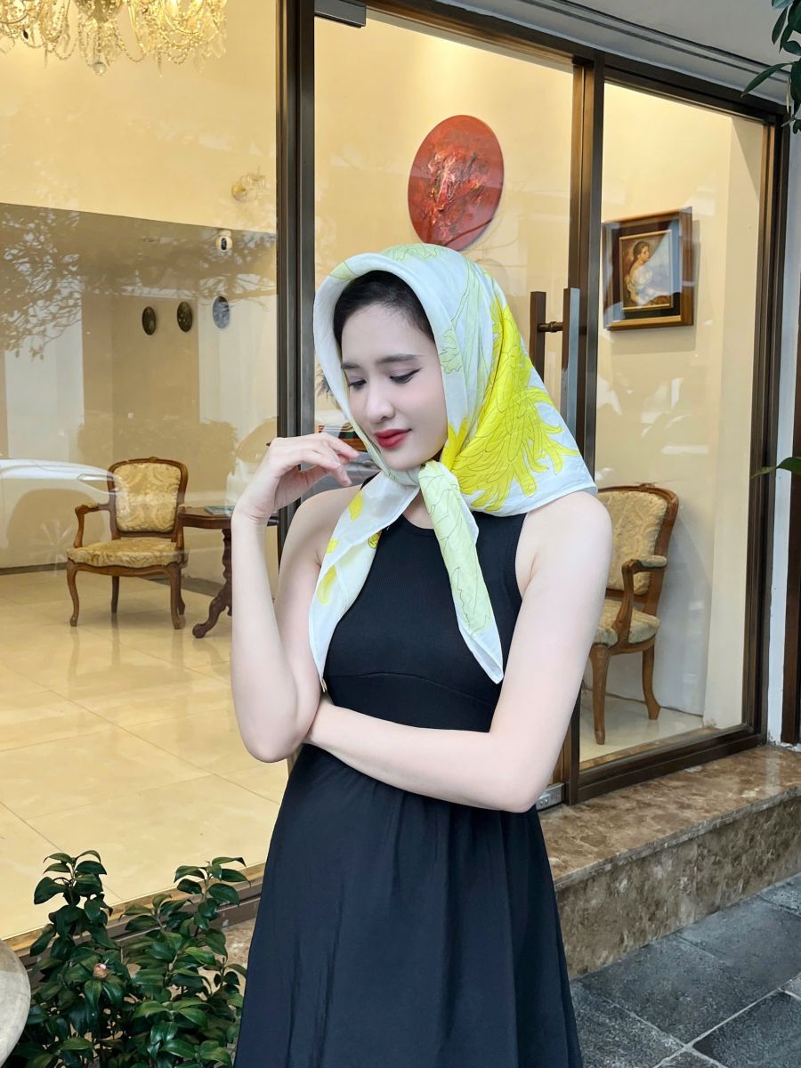 Kích thước vuông 88x90cm giúp chiếc khăn dễ dàng sử dụng theo nhiều cách: