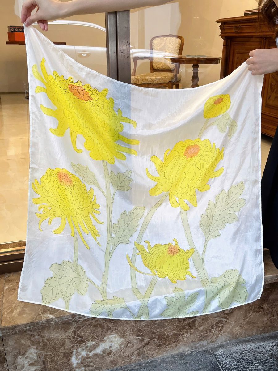 Khăn lụa vẽ tay hoa cúc là lựa chọn lý tưởng cho nhiều dịp:
