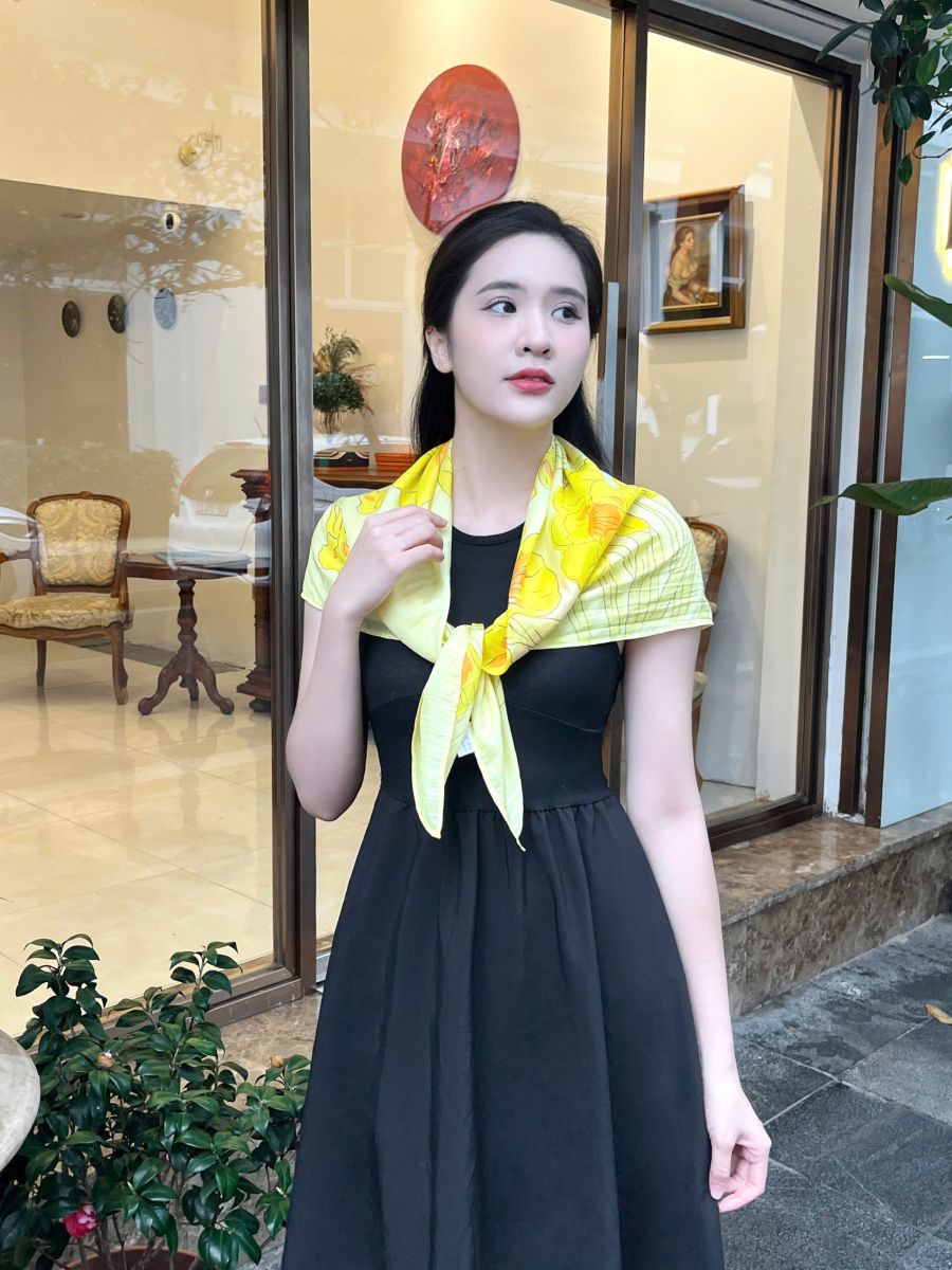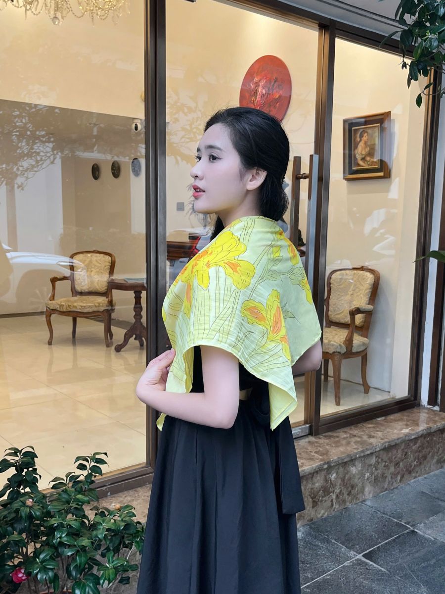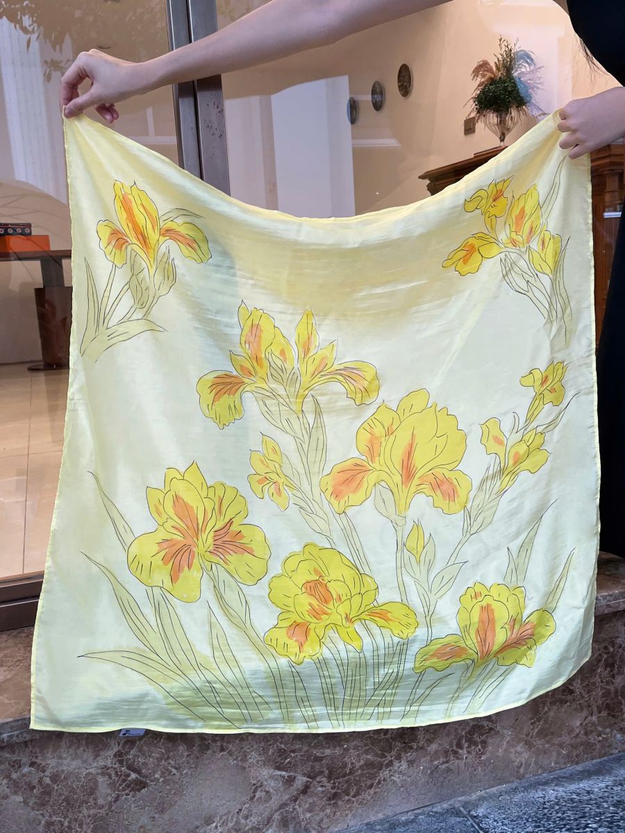 Khăn lụa vẽ tay hoa diên vĩ vàng là lựa chọn hoàn hảo cho nhiều dịp: