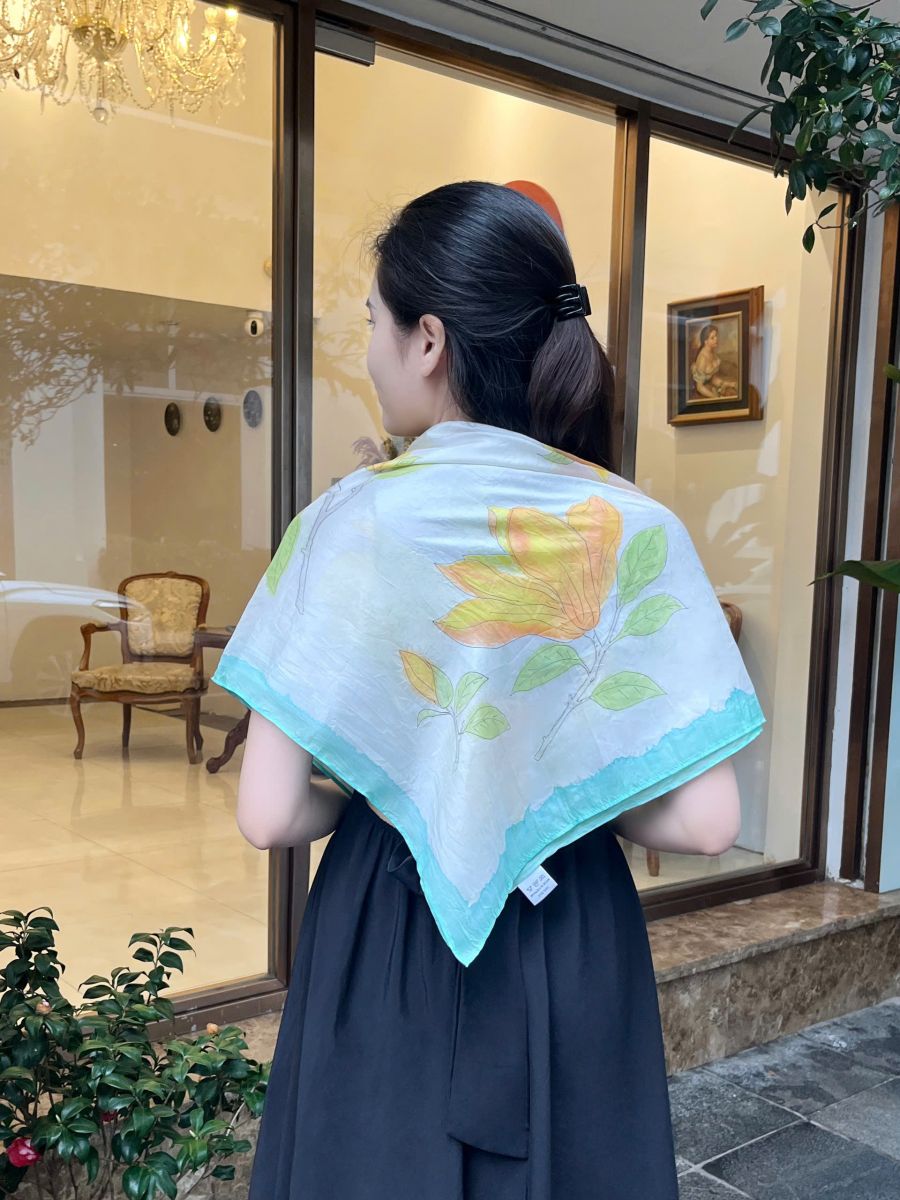 Khăn lụa vẽ tay hoa mộc lan vàng là lựa chọn lý tưởng cho nhiều dịp: