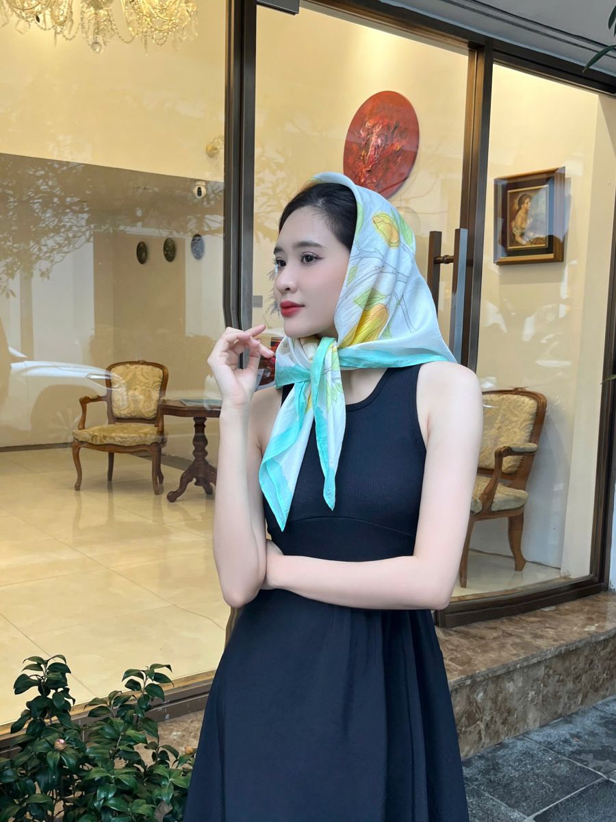 Chiếc khăn không chỉ là phụ kiện thời trang thanh lịch mà còn mang ý nghĩa về sự cao quý, tinh khiết và vẻ đẹp thanh tao.