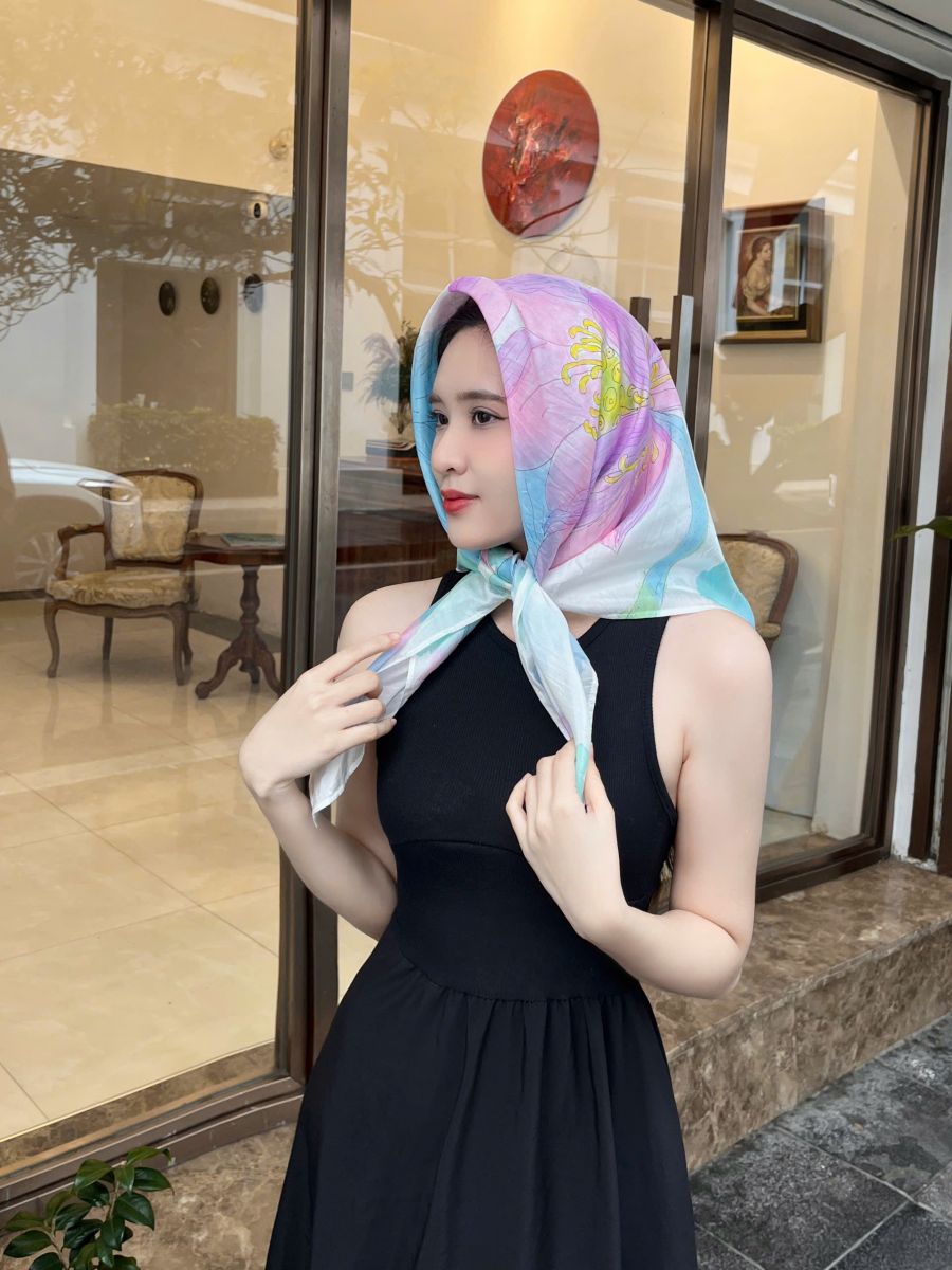 Chiếc khăn không chỉ là phụ kiện thời trang tinh tế mà còn mang ý nghĩa về sự thanh cao, bình an và vẻ đẹp tinh khiết.