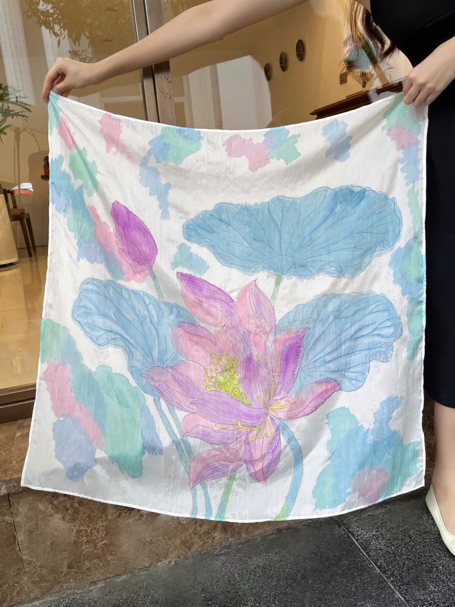 Khăn lụa vẽ tay hoa sen tím là lựa chọn lý tưởng cho nhiều dịp: